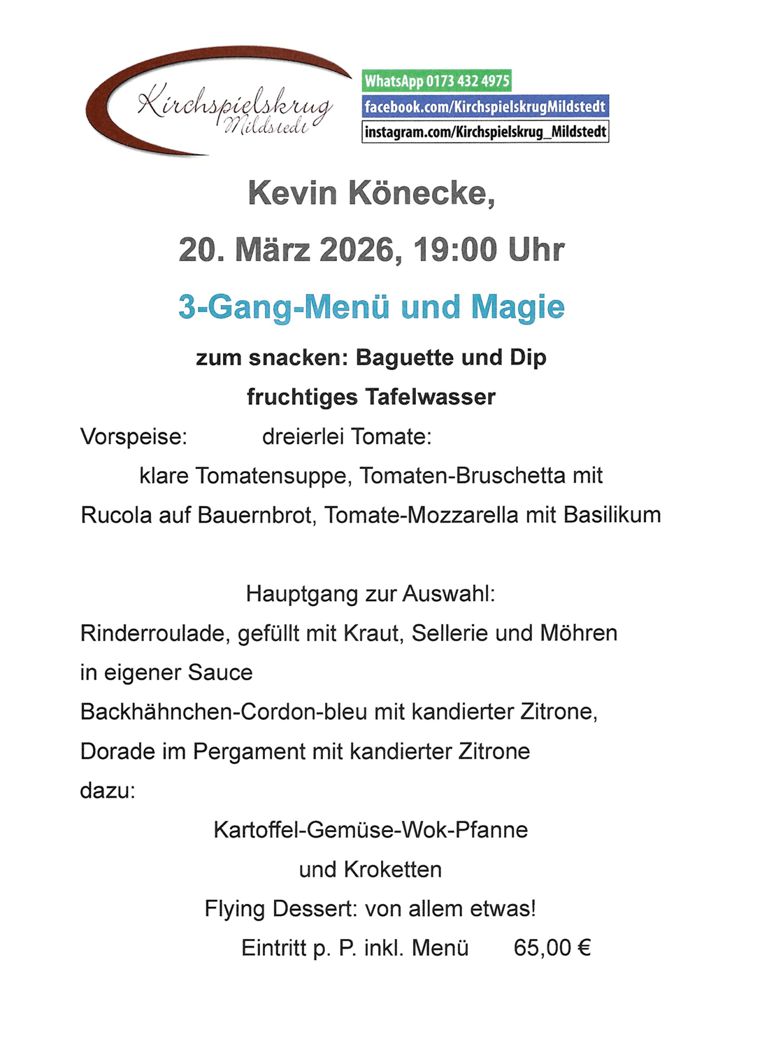In vielen TV-Sendungen und in seinen deutschlandweiten MAGIC DINNER SHOWS begeisterte er bereits unzählige Zuschauer und ist jetzt mit seiner MAGIC DINNER SHOW in unserem Hause zu Gast und verzaubert vielleicht auch bald Sie!